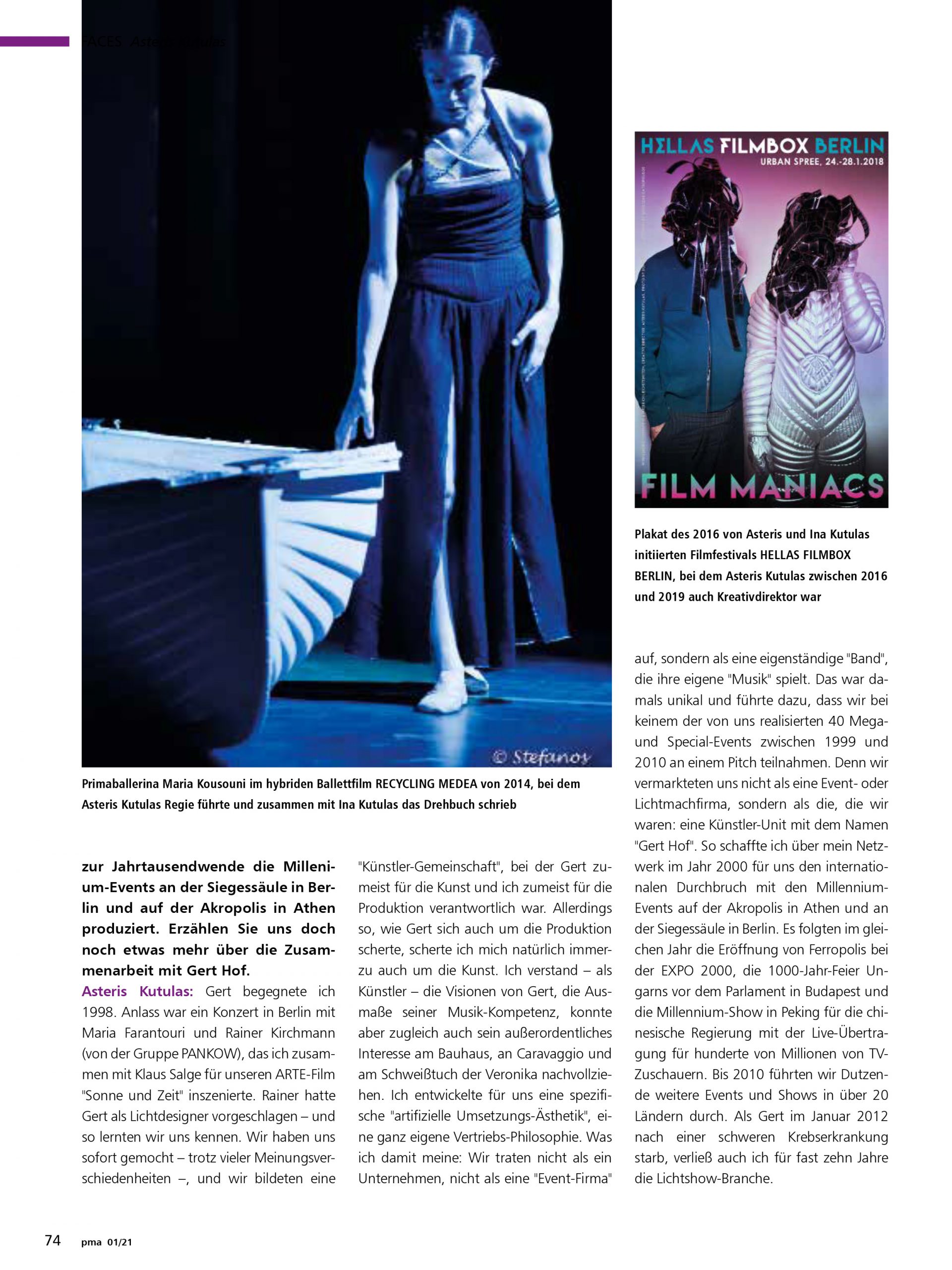 Asteris Kutulas: 2014 hatte ich die Produktion meines Ballett-Films „Recycling Medea“ beendet, der übrigens in einer überarbeiteten Form ab Sommer 2021 – so Corona es erlaubt – in die deutschen Arthouse-Kinos kommt.