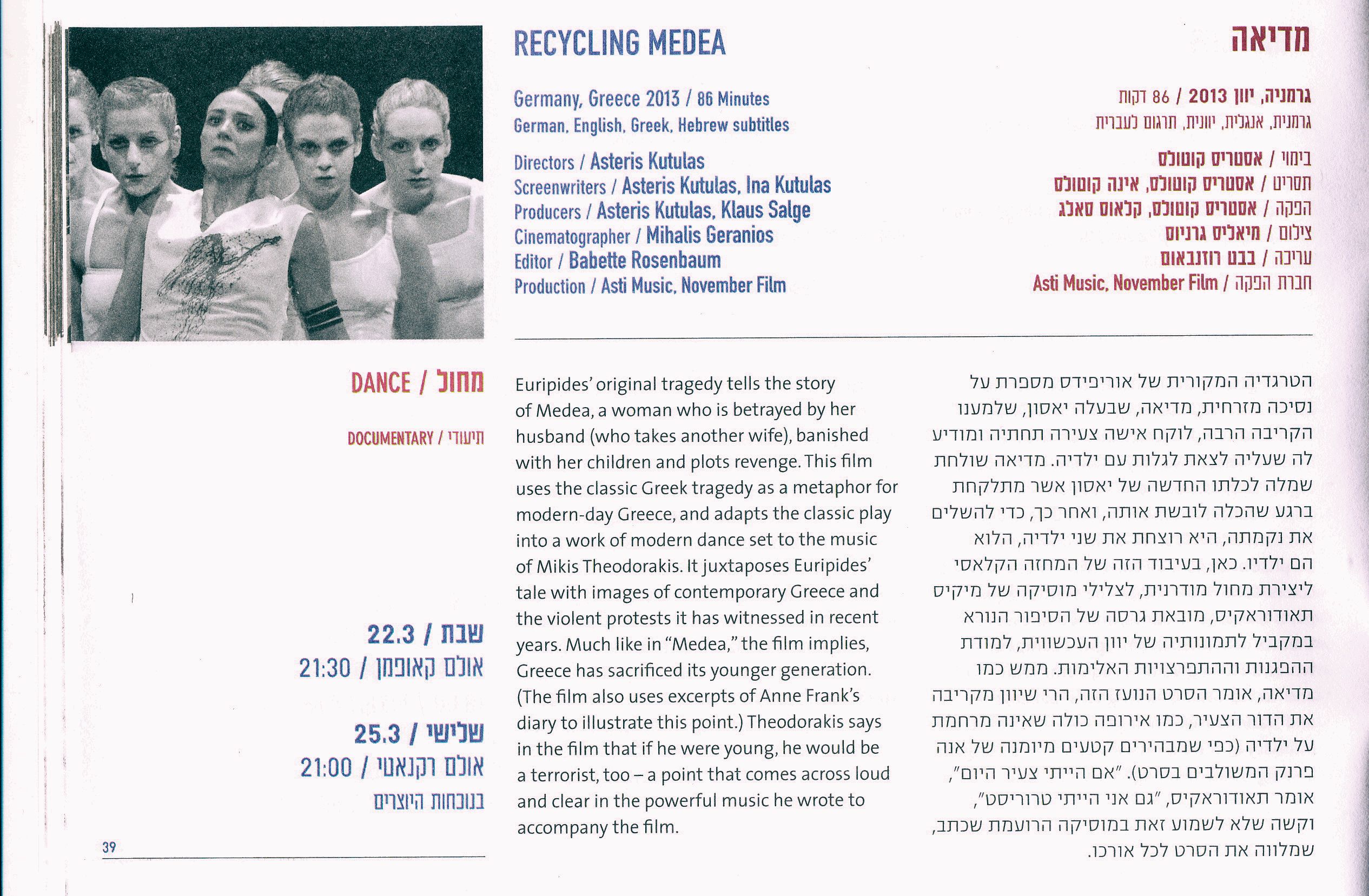 Review of Recycling Medea in the programme of the EPOS film festival in Tel Aviv, Israel.